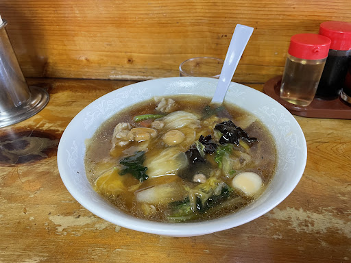 Read more五目うまにそば880円だったかな 休日の一時過ぎにいきました 座敷はファミリー客でいっぱいなので、カウンター席 カウンター席は調理場の鍋を振る音や皿があたる音がかなりうるさいのでおすすめしません 店が混んでいたこともあって、提供は遅め 五目うまには人気メニューだけあって、ひとくち目からがつんとうまみを感じる味付けでした ただし、自分にはちょっと味が濃かったらしく、ノドが渇いてしまい、コンビニでカフェオレを呑...