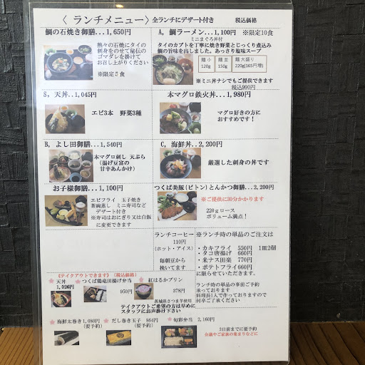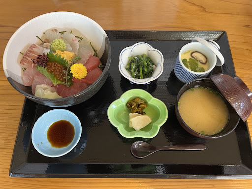 Read more食べてみたかった鯛だしラーメンが完売だったので、少し奮発して海鮮丼(2310円)を注文 中トロ、赤身、鯛、イクラ、白身2種(魚種不明)などで、刺身の量が多くてとても美味しかった ご飯は酢飯で薄め丁度いい味加減で美味しかった 海鮮丼は標準だと私にはご飯が足りなくて刺身が余ってしまったので、追加注文のつもりでご飯のおかわりをお願いしたところ、サービスでご飯を盛っていただけた(ありがとうございます) おかげで満腹にもなれ、満足感も高かった またデザートの芋プリンも美味しくてお土産として別途購入した