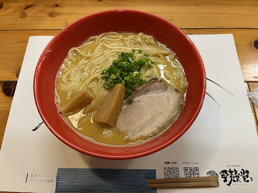 I've tried a shrimp based ramen and my wife a sea urchin based ramen and they were both delicious. The place is not very big, 8 seats at the counter, no tables, and seems to be patronised by young people, university students. Prices are fair. Parking is often full but you can cheat and use...
