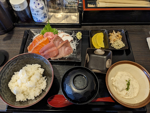 Read more道路上の大きな看板に書かれた「自然薯料理」の文言に惹かれて晩御飯で訪れた。自然薯を使ったトロロ・自然薯そばを組み合わせた定食がメインのお店。ご飯(麦ご飯もOK)のお替わり無料。自然薯そばが付いたお得セットから、ネギトロ御膳をオーダーした。ネギトロ丼のご飯は酢飯か麦ご飯か選択できたので、トロロをかけて食したかったので、麦ご飯をチョイスした。満腹にしたいなら、酢飯でネギトロ丼を楽しんで、お替わりの麦ご飯でトロロをかけるパターンもあるのだが、ちょっとワンパク過ぎるので自重する。店内は5、6組の賑わいで、程なく御膳が運ばれた。ツヤツヤのお蕎麦とネギトロのコントラストが食欲を誘う。先ずは自然薯そばからいただく。自然薯をそばの繋ぎにしたと思われるお蕎麦は麺の太さの割にみずみずしく、スルッと入って行く。強くそばの風味は感じないが空腹感を満たすのにはもってこいで、盛られた量もまさに「お得セット」だ。ネギトロにはもう一人のメインキャラクターの自然薯トロロと共演してもらう。派手目な演技を上手く調和させて、尚且つ麦ご飯とのコンビネーションは名人芸だ。酢飯だとネギトロと自然薯の共演はどうなるかと考えながらも、今日はそこまで求めることも無い。わさび醤油で味付けしつつ、鰹節ととろろ昆布のアクセントも絶妙で、主演のネギトロも初々しくも妖艶な演技が素晴らしい。途中でベテラン刑事の様に自然薯そばがストーリーにメリハリを効かせてくる。名探偵コナンでは無い、「はぐれ刑事純情派」的な見応えを満喫できた。お会計では、「コロッケor唐揚げ2...