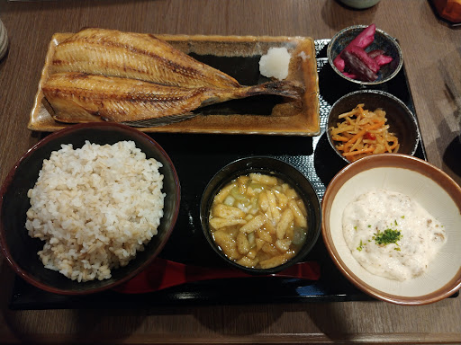 焼魚定食1300円(税込) 焼魚は鯖、鯵、ほっけから選択。 ごはんはコシヒカリ、麦飯から選択。 ディナーで訪問したんですが、1300円でこのボリュームは凄いと思います。 他のメニューもディナーと思えないくらい安いです。 さて私はほっけと麦飯を選びました。 味も凄く良かったですよ。 ほっけは大きくて脂がのっています。大根おろしと一緒に食べると最高です。 大根おろしがもう少しあると嬉しかったです。 自然薯はこの店の売りだけあって言うまでもなく美味しいです。 味噌汁もちゃんと出汁が効いてて好きな味です。 正直期待以上でしたよ。 スタッフさんの接客も凄く丁寧です。