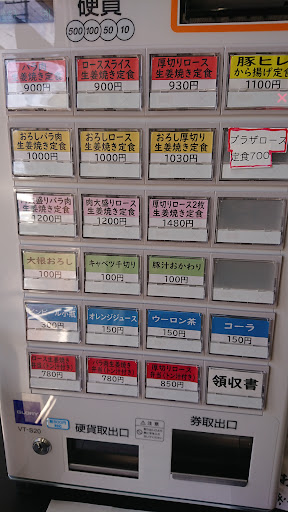 Read more初訪問。お店に入ったら食券を買うようになってたのですが、券売機が故障なのか❌になってた。少ししたら店員さんが来て説明してくれたのですが、いまいち分かりにくく困っていたら、別の店員さんが再度説明してくれました(笑) おろし生姜焼き定食とかにしてみたら、別皿に大根おろしが入って提供。味付けは悪くはないけど、タレが濃い目だったので、大根おろしで濃さを緩和しました。ご飯は少し固めのボソボソした感じ、豚汁は私には少し薄めな味付けに思えました。ちなみにご飯はおかわり無料で、普通のご飯かニンニクご飯?とかいうのがありました。 お店の雰囲気とか悪くはないけど、特別また行きたいかと聞かれると、あえて行...