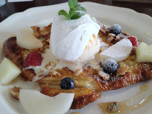 頂いたのは 海外からの視察もあるという噂のクロワッサンフレンチトースト。自分が思ったとは大分違ったデザート感満載の品。 @1100は手間を考えると妥当とも言えるが自分にはちょっとだけハードルが高い。 飲み物は本当はストレートのコーヒーが良かったのだろうが焦ってしまい アイスラテなぞ頼んでしまった。 利用方法は先ず席を確保し メニューを決め カウンター迄自分で注文と支払いを済ます→席で待つ。水もセルフ。 片づけはお店の方がしてくれるそうです。 来客状況 女性率 99.999%。