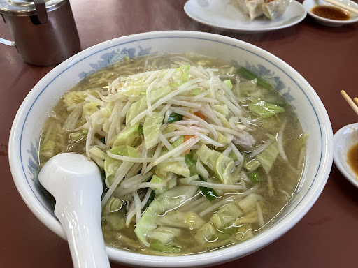 麺は普通サイズのちぢれ麺?なのですが、独特な風味があります。この風味は個人的に大好きです。 スープは塩味ですが、様々な野菜の出汁のおかげもあって『美味い』。 野菜の炒め具合も絶妙でした。 お腹が空いていたので『大盛』にしましたが、侮っていました。本当に大盛です。 器からして笑えますw 麺類の他にも炒め物等のメニューもあり、毎日通っても飽きないと感じました。