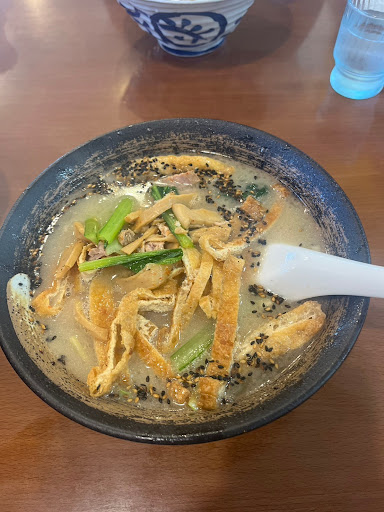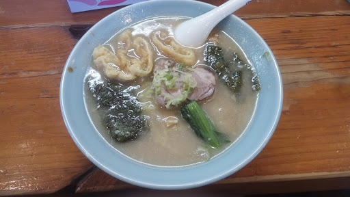 Read more初訪問 6号線沿いの本店はいつも逆(右側)なので入りにくいのでこちらに来てみました その前にいろいろな口コミを見て特に意識して入店 店内は思ったより明るかった外から見ると暗いようだが ん? なんだこの雰囲気ラーメン屋らしからぬ静かで客人の話し声の方が良く聞こえる スタッフはこんなにいるの位目立つそのうちの二人程度 いらっしゃいませ の声席を指定するでもなくなにも声が掛からない 適当にカウンターに座る セルフの水を飲みながら凄い量のメニューを一つ一つ読んでも頭に入らずイメージもできない 当然説明なんか皆無 口コミを参考にして来たけど食べたいものが無くなりそうで更にオーダーも聞きに来ないと言うか気にしてない様子 5分しても変化なかったら帰ろうと思うくらいの店内 黙って言われた事しかやらないA テレビ気にしているB 奥で固まって話し込んでるCD 店主らしE 洗い物に集中しているF 8部程度の客人でこのスタッフの数相当儲かっているんだなと税務署的な発想に嫌気が指す 口コミ通りの無愛想なスタッフに笑ってしまいそう これが改善されたらかなり星数上がるよな 肝心なラーメンは 1番の売りである みぞれラーメン をチョイス 空いていた事もあり5分も掛からず着丼写メの通りのビジュアル 背油無しでもそこそこの油の量油を避けながら飲み干す 魚介臭はなく豚骨臭のみ醤油ベースの塩梅はやや強めかな? メンマ チャーシュー 海苔 大根おろし 梅干し 大根の葉みじん切りと刻みネギ 大根おろしは水分絞っているようでスープに混ぜても塩梅は特に変化無し 梅干しは塩味薄い物をを使用しているようで良かった 麺は中麺で完遂少な目 カウンターには豚骨店舗御用達のセットが置いてあり餃子用のセットもある デホで仕上げたかったけど少し使ってみた ラーメンは完成度は高く評価は高くしたい リピしたい スタッフの接客をも...
