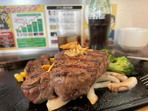 日曜日の15:30頃でしたが、結構混んでいました。ワイルド450g、食べる時間を考慮して焼いているのか、他店よりややレア目に焼かれていて、最後まで硬くならず柔らかい状態で食べられました!トイレも店内も比較的綺麗、座席数も余裕を持った配置で、店内の臭いも比較的少なめ、駐車場も問題なし。店員さんも、背の高い店長らしい男性の方の接客が笑顔でとても気持ちがよく、フロア全体のお客様に常に目を向けていて、好感が持てました!今までは閉店した印西西の原店が一番好きでしたがこの店舗もとても良いと思います。 システムの改悪により足が遠のいていましたが、元に戻って割引クーポンも配信されたので久しぶりに行ってみました!キャンペーンのミスジステーキがとても美味しかったので、8月は2回来店。相変わらず従業員は全員感じが良く、ミスジも柔らかくてとても美味しかったです。ぜひ定番にして頂きたいです!以前ホールにいらしたの店長さんらしき方は(斉藤さん)今回は焼き場にいらっしゃいました!帰り際のイケメンスマイルがとても素敵でした!また柏から伺いたいと思います! -----------------------------------------------------------------------------------------------------店長さんらしき人は斉藤さんではなく渡辺さんでした。ごめんなさい。今も相変わらず柏市から通ってますが、いつ行っても最高に良いです。ホールにいるギーさん、笑顔が可愛くて最高です。この店舗はどの方も接客が素晴らしい。ワイルドより低価格な赤身の肩ロースが出ましたが、こちらの方が厚みが薄く、食べやすいような気がします。肉に火が入り過ぎないようにか?鉄板もワイルドより低温で提供してくださっ...