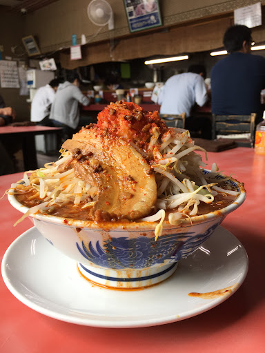 Read moreR6.11 ふじ麺(950円) 大関(麺500g 300円) バカ豚(+6枚 550円) 野菜増し(50円) 麺バリカタ ニンニクマシマシ アブラマシマシ 計 1850円 土曜13時55分 待ちなし カウンター空席あり 座敷6人用座卓×3台 座敷は賑わってる あ 1000札足らん 両替… 店長ワンオペ 忙しそうだが お願いしたら 優しく対応 へー 適当にカウンター席着座 食券置き 麺バリカタ聞いたら できた 茹で時間 普通5分 カタメ3分 バリカタ2分 らしい 丁寧に教えてくれる 同時に ニンニク聞かれる マシマシできる アブラマシマシも 女性店員奥から 休憩終わりか 夫婦か仲エエし 着丼ビジュアルは 丼デカく 盛上り目立たぬ が 頂上 溶岩ドーム状ニンニク 当にマシマシ ニンニク 醤油漬け込み 茶色気味 濃くはない 麓 ブタ張付き 隙間から ヤサイ チラリ よき ヤサイ クタ気味 少し冷めてて 猫舌に優しい スープ 液脂層 厚 脂下は カネシ効いた 非乳化 甘さも感じ うまい 麺 太い 縮れ 小麦薫り 粉感じる うまい ワシワシ超えた 歯応え 横浜のMEN YARD FIGHT 思い出す迫力 バリカタ最高 好き ブタ 7枚ある バカ豚は+6枚やから デフォは1枚か やらかいし 味はいいのだが ペラペラ薄過 脂身率4割超え多過 ほんで高過 マシマシアブラ 大小塊脂 そこかしこから涌出て しまいに 一面 脂だらけ 正にマシマシ 凄くいいのだが だが ブタが3倍厚ければ… でも 麺 最高 スープも ニンニクも アブラも コスパ最悪のバカ豚やめて 麺を食べる店 として...