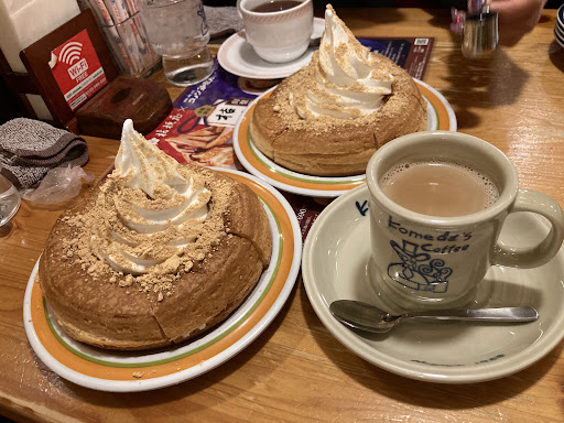 Good coffee is available almost anywhere but Komeda takes good quality coffee to the next level by overcharging for it. Most of the food is of average quality and overpriced, as well. Lots of carb-heavy options.