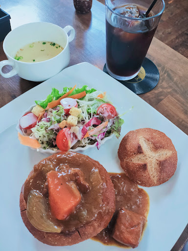 Read more牛久市は、クック De アムールさんという最高の洋食店がありますが、きちんとした食事をする場所 もっと気軽に寛ぎたい場合、アムールさんが定休日のときに行きたいと思えるお店がこの辺りになかったんですが、ついに発見しました 天井が高く、広々として開放感抜群 中央の階段とロフトの視覚効果もあっておしゃれで寛げます まるな自慢のカレーライス 850円(税込)と黒胡麻のケーキ500円(割引で400円...