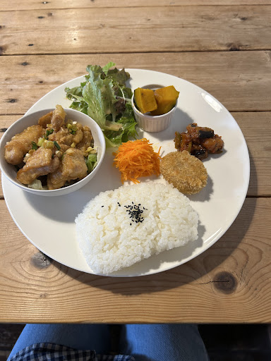 Read more外観は少しびっくり! 悪く言えばボロい家です、が、 中は中々雰囲気のある店内でした。 私は初めて伺いましたが、人気のあるお店です。 駐車場は店横と向かいの2箇所あります。 ワンプレートです。 メニューは色々ありましたが、今回は鶏の唐揚げプレートと別料金のデザートとコーヒーを注文しました。 デザートと飲み物が別料金なので割高でした。 メインよりデザートに力を入れているように思えます。私がいただいたモンブランのシフォンはシフォンケーキが少しパサついていましたが、モンブランクリームは栗がたくさん入っ...