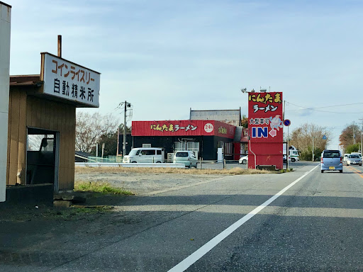 にんたまラーメンはドライブインといった趣で国道沿いに出店しており、どのお店も鉄道駅から遠く離れていますが、つくば店は土浦から出ているバス路線の停留所の目の前にあり、本数もそれなりに出ているので、アクセス性の良さから当店に決めました。