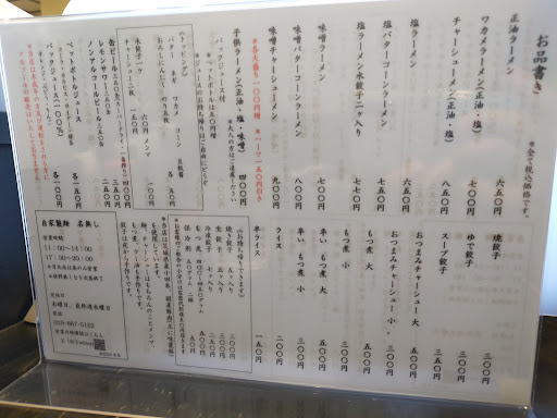 メニューは多くはないが醤油、塩、味噌ラーメンと各種、ご飯物はライスのみ、それとチャーシュー、餃子ともつ煮。