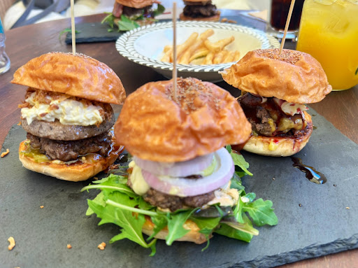 モンタナとは雰囲気の違ったリゾート風。 メニューも違って、こちらは8cmパンズの小ぶりなバーガーの2種/3種セットとなっています。
