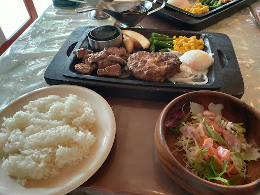犬用のメニューは、つくば鶏のモモ皮なし(150g¥858)、つくば美豚(150g¥1320)、NZ産牛サーロイン(100g¥1650)の3種類がありました。 今までも外食したことがある愛犬ですが、ブランド鶏の山盛りに喜び過ぎてテーブルに思わず顔を寄せてしまった程でした。 遠く離して食べさせましたが、夢中で私は自分の食事が後回しになってしまいましたが、常陸牛と常陸の輝き(豚肉)のハンバーガーはとても美味しかったです。バンズも美味しかったので伺ったところ、決まったパン屋さんのバンズでした。ポテトも山盛りでサラダがついていました。 ランチは220円で飲み物を付けることが出来ました。 暑い日や寒い日に室内で、犬用のメニューまであり、お味も美味しく、また利用させ...