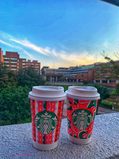 It's a Starbucks. That's it. One of the only places you can lounge on or near campus without the burden of paying for something. They seem to like it when you order to eat-in but there are also tables outside. I like the napkins here because they're not the waxy kind you typically get at a restaurant in Japan. Usually they feature a special drink each month. Like any Starbucks, it's pricier than getting your coffee from 7 eleven. But I meet lots of people here. I wish they had outlets to use for computers but they don't let you. They have some cute gifts for your birthday or gift cards. Coffee is alright but I prefer Phil'z Coffee in California. I do like the Matcha...