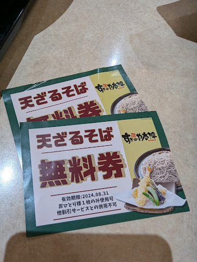 Read more10数年前にセットのにぎりの白身を食べた時に明らか傷んでいる味がして それ以来足を運ぶ事は無かったのですが今回はお蕎麦の無料券をいただいた事もあり行ってみました。 お客さんは数組いたのですが、何でしょう?この活気の無い店内の雰囲気は😅と、思いつつ…天ざる蕎麦を注文しました。提供までの時間が長いですね💦30分以上は待ったでしょうか…待ってる間に子供が頼んだお子様うどんが先にきてしまい…食べ終わってしまいました… そして子供も一緒に再び待つ事に…🥴 ようやく天ざる蕎麦がきました! 見た目で分かるこの蕎麦のボソボソ感…😱上げてみると麺と麺がくっついちゃって……食べてみて、これはスーパーに売ってるソフト麺ですか?な、お蕎麦🤣食べれない事はないですよ…天ぷらはサクッとして美味しかったですが割ともたれる油感… 私達の後から来るお客さんもみんな無料券を使っていました。 隣のご夫婦にきた天ざる蕎麦をのぞいてみたら、あれ?なんか私達の時の蕎麦と見た感じなんか違くない?!みたいな少しツヤっと茹であげ感がありました… 私達の蕎麦はあらかじめ茹であげられて放置されてた物がきたのかしら🤔?とあれこれ考えてはみたものの分かりませんね😅 今回は無料でいただけて良かったのですが、やはり今後利用することは無い...