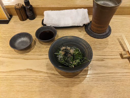 Small sushi place. Need to book in advanced to get a seat. Very nice waiter and chef. Lucky for us, one speak some English. Mainly on set menu with selection of chef creation, from salad, sashimi, sushi, cooked fish and many other, the larger set is for heavy eater; every dish is served in fine dinning plating, very impressed. Few photos to share as keepforgetting to take photo of many dishes as it come. A must try place. Our 2 hours delayed dinner...