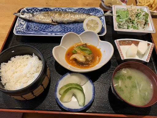 料理は、おすすめメニューを注文。 旬のものを提供されていてたので、初モノをとおもって頼みました。(秋刀魚定食) 見ての通りですが、いろいろ小鉢があってどれもいいぐあいの味付けでした。 少しお酒もいただいたので、ちょこちょこできるのも良かったです。 食後には、子ども用のデザートと大人にはアイスコーヒーが出てきたので大満足です。