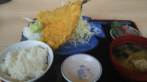 Read more何度も何度も前を通ってネットで調べて 小雨が降るとある日 今日だ! と初来店。 12時ちょい前 それでも8割の入り・・人気店のようです。 ランチは色々あったのだけれど 欲張って 鯵・牡蠣フライ定食 1200円也。 刺身定食にも魅かれたけれどフライを選択。 ご飯・あら汁 おかわり自由。 あら汁の中に入ってるわかめがめちゃくちゃおいしかった。 ご飯はあともう一歩美味しかったらよかったのになぁ。 でもガテン系の男子なんか3杯~おかわりしてましたよ^^ 次は家族と夜に来たいなぁ。 パーキングが狭すぎて心臓がバクバクです。入るのも出るのも怖かった他のお客様に見ててもらって無事出庫できました 恥