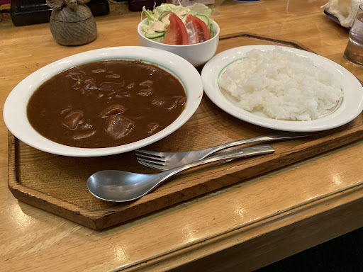 カウンター内は小さく 奥の厨房で料理をしている様子だが、 主に片付けているような音が続き、 結構待つ時間があるので若干不安になったが 届いたビーフシチューはおいしかった。 ご飯は水分多めで少なめ シチューの量は結構ある。