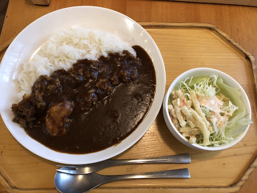 程なく到着したチキンカレーは大人の味付けでとても美味しい。 マカロニサラダも優しい味付けでカレーにピッタリ。 ボリュームもそこそこあって食べ応えありでした。