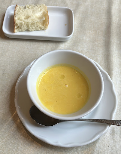 ・本日のスープ かぼちゃのスープだった。冷製かと思ってたけど温かいスープ。お腹が温まった。味も好み。