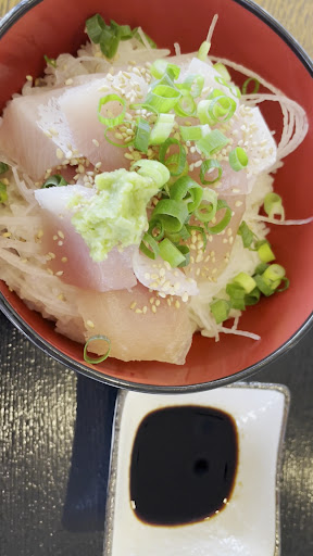 津久見駅周辺繁華街?に近く水産加工会社隣に位置する、2階が飲食店且つ1階が直販店と言う商施設です。 カウンターが真ん中にあり、その周りに仕切られた御座敷席数は40ぐらいでしょうか。リュウキュウが売りのようです。 リュウキュウとは元々漁師料理で、角切りした魚(中落ちとか)を漬けにして丼で食べると言う料理です。 私は温かい御飯に冷たい魚が乗った丼は苦手なのでミックスフライ定食をオーダー、嫁もそうなのでマグロかつをオーダーしました。 ミックスフライ定食を食べましたが、まずは唐揚げ味が薄いです…冷めたら味無いでしょう。 次に海老フライ🍤ちっさ!…でも自分とこで衣付けしてます、良いです。 さてコロッケは…バリバリ既製品ですがカボチャコロッケなので甘くてもOKです。 問題のマグロかつですが薄くエスカロップされた2枚、ん〜どうかなぁ〜… 硬っ!そらそうやわなぁ、厚〜に切らんと中の水分が無くなってしまうから。 嫁はと言いうとなんと豪華6枚入り🎉1枚口に運ぶと青ざめとったwww、上にはサウザンドレッシングみたいなのがかかってて[これ余計やわー]😨って剥がしながら食べてたが、結局二人でなんとか食べた。 見渡すとビジネスマンやら地もPはほぼ鰤とマグロのハーフ&ハーフリュウキュウ丼を食べました。 やっぱり皆が食べてるやつが正解だわなぁ…でも二人して苦手だし😓 私らもグーグルマップでリサーチしとけば良かったです…皆さんの参...