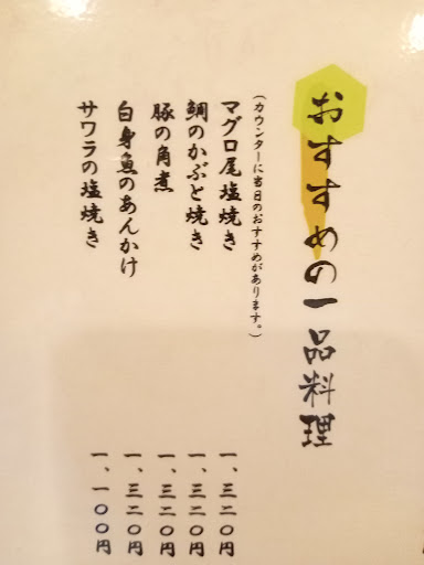 12/27伺いました。周りの店舗もほぼ閉まっているなか、こちらは開いていたので入らせていただきました。 一人でしたが刺し盛りも一人用にしていただき、さわらの塩焼きも美味しくいただきました。 他のお客さんが頼んだだし巻き卵も白身魚なので あんかけも注文のが入った後に全部手作り。あんかけのあんまでしっかり出汁を使って作っていらっしゃいました。 私の頼んだお刺身もさわらの塩焼きも美味しくいただきました。店主さんの真面目なお人柄がお料理に出ているなと感じました。 また利用したいで...