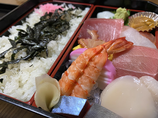 お刺身は11種のネタ!というと聞こえはいいけど、とびっこやタコ(茹で)、かまぼこ、作ってから時間経ってる感じの甘めの卵焼きなど、並寿司のネタという感じのものが多く、他はマグロ、中トロ?、ホタテ、タイ、甘エビ、赤貝、小肌で11種。スーパーで普通に売ってるお刺身程度。普通に美味しかったです。 小鉢などもなく、ご飯とお味噌汁、お漬物がついてるだけなので、このネタでこの値段では、あまりという感じでした。 天ぷらもお刺身も、単品を選んだ方...