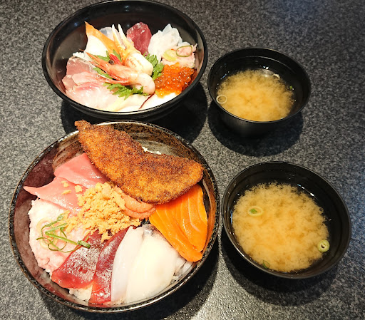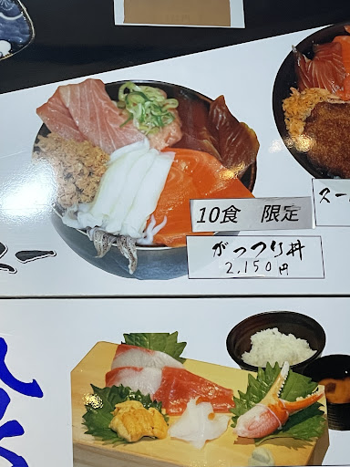 なんか勘違いなコメントが散見されるけど、ここは近辺のバスツアーなら必ず立ち寄る超メジャーな施設で、もろ観光客向けの店なのは直ぐ分かる。コロナ終息でほっといても客が来るんだから丁寧な接客など期待する方が間違いだし、価格は盛るし、料理の量が少ないのも併設する海産土産物屋で買物してもらわなあかんので当たり前。ただ海鮮丼としての味は期待通りに美味い。鮮度が悪いとか言ってる奴はよほど運が悪いのか、おそらく漁師なんだろうね。w この辺りで少し足を伸ばせば、安くて多くて接客良く美味しい店はいくらでもある。自分が探す手間を省いて、こんなバイパス沿いの立ち寄り易いいかにもな店選択しといて、文句言うのは見当違い...