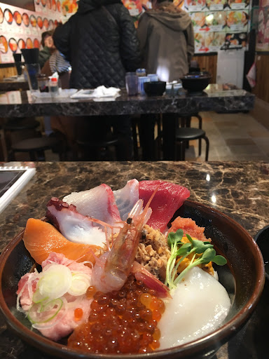 Read morePopular place for lunch with average prices. I had the 12 types of seafood don (shrimp, maguro, tako, salmon, ikura, negitoro, squid, uni, etc) for 1800 yen. The pictures always look better than the real thing but the real thing was pretty delicious and fresh. Servings are smaller than expected (lots of rice) and it comes with a bowl...