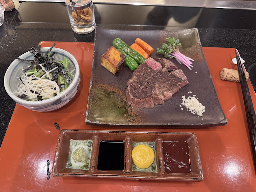Read moreExpérience exceptionnelle! Nous sommes arrivées dans ce restaurant un peu par hasard, les prix nous paraissaient haut de gamme mais l’expérience en vaut le coup! Le chef est adorable et cuisine devant vous, dans une préfecture aussi éloignée des centres touristiques, nous avons été très heureuses de pouvoir converser en anglais avec le chef, tout était délicieux de la viande au riz a ail en passant par la salade ou le thé au jasmin, trop loin de notre Canada pour dire que nous reviendrons mais nous...