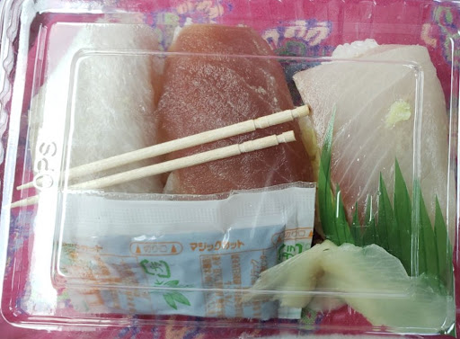 ●安い 寿司3貫で100円、カニのちらし寿司350円、バランス弁当350円(←弁当だけ写真を取り忘れました)などなど…お寿司は100円の回転寿司より安いし、お弁当はお寿司やお肉、野菜も入って350円です