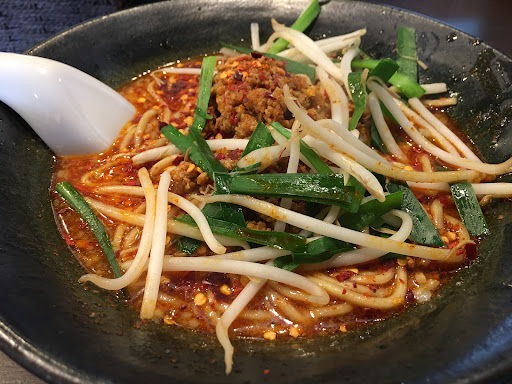 驚くほどに完成度の高い担担麺。 濃厚な胡麻のコクと爽やかな花椒の香り。口当たりはマイルドで辛味と痺れが後からじわっと迫り来る感じです。 個人的にはもう少し辛味が欲しいところですが、幅広い層に受け入れられるよう仕上げられたのだと思います。 ちなみに辛いのが好きな人には辛味を加えた「辛超×5濃厚担担麺」もあります。 中太麺はもっちりとしたタイプで存在感あります。具材ではたっぷりのミンチが嬉しいところです。 この日は雨ということもあり淋しい客入りでした。