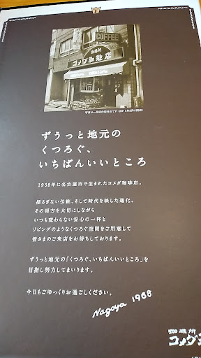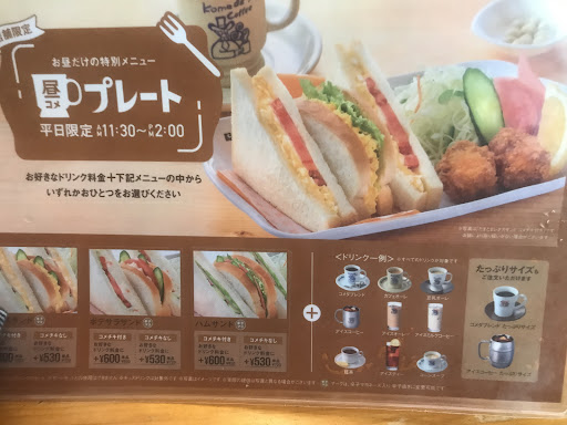 Read more2022年の年末。コメダ珈琲に初めて伺いました。 ご存じの通り、大手チェーンのコーヒーショップです。 噂はかねがね伺っていますが、真偽の程を確かめにいきました。 まずブレンドコーヒーは普通だったと思います。 インパクトがあれば記憶に残りますが、際立って美味しかった印象はありません。 モーニングを求めて行ったのですが、時間が過ぎてしまい通常メニューを選択しました。 サンドウィッチはミックスサンド。それにデザートのミニシロノワール。 正直、サイズ的にお得感を感じられませんでした。 カツパンやハンバーガーなど、逆詐欺的なメニューもあるようですね。 次回はたっぷりサイズのコーヒーとトーストのモーニングにありつけるように早い時...