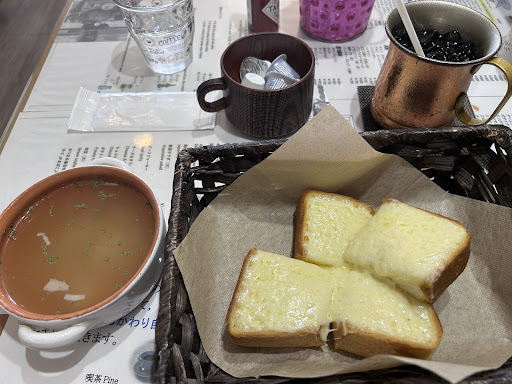 The cheese toast was satisfying, but the soup didn’t pair well with it. Also, the utensils provided for the soup made it difficult to eat.