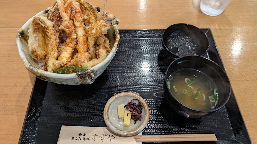 We both got tempura, which is one of the pricier options but the tendon comes with a lot of stuff: two shrimp, two pieces of fish, and a couple of vegetables. If anything, the price of the vegetable tendon seems high when compared to what you get in the...
