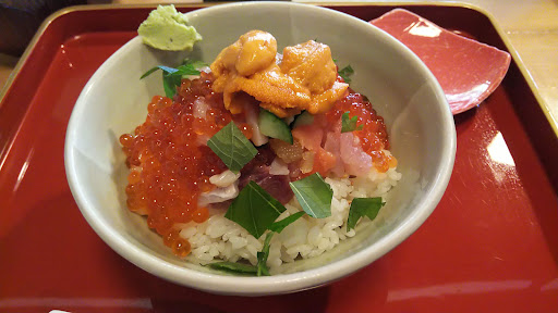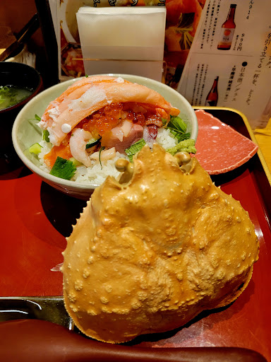 Read moreæ¥ææ¥ã®13æéãã«è¡ããŸãããå ¥ãå£ã«äºçŽçšã®å仿©ããããŸãã3çµã»ã©ã®åŸ ã¡ã§å ¥ããŸãããåŸ ã£ãŠããéã¯å³é£ã®åŸ åå Œå£²åºãæ¡å ãããŸããããã«ã¯å·åã®ãã€ã¯ã¢ãŠããé¢é£ååãå°å ã®ããããååãªã©ã䞊ã¹ãŠãããŸããé çªãããŠã«ãŠã³ã¿ãŒã«åº§ããŸããã奥ã«ã¯åº§æ·ããããäºçŽãã§ããããã§ããå°å ã®ç¥ãã®ããã³ã倧é»ãã«å ãã 䞌åã䞊ãã§ããŸããæµæ¯å¯¿äžŒãäžçªäººæ°ã®ããã§ããããããæµ·é®®äžŒã§ããåŒå€©äžŒã¯ã倩䞌ãã§æµ·é®®ãšéèã®ãŠãã·ããããããã®ããŠãããŸããé£ããšäºäººã ã£ãã®ã§ãã³ã䞌ãšåŒå€©äžŒäžã€ãã€æ³šæããŠã·ã§ã¢ããŸããã倩䞌ã¯ãã£ããã¿ã¬ãããããšãŠããããããæµ·é®®äžŒã¯èªåã§ãããããšã¯ãµããæ··ããæ¹åŒã§ããã©ã¡ãããã¯ãããšãŠãããããã§ããäžç·ã«ä»ãããã§åºæ±ããšã£ãåžãç©ããšãŠãçŸå³ããã§ããããã³ã倧é»äžŒããšããã®ã人æ°ãããããã³ã䞌ã«å°ããªããŠãããã䞌ããå¥ã®äžŒã§åºãŠããŸããçå€ã®æ¹ã«ã人æ°ã®ããã§çå€ãã³ããŒã®è»ããããããããŸãããå°çšé§è»å Žããªãã®ã§â ïŒã€ã«ããŸããããå®éã¯ãããããã§ãè¡ããããåºãã ãšæããŸãã I went there after 1pm on a Sunday. There is a machine for reservations at the entrance. There were about three groups of people waiting before I was able to enter. While waiting, I was guided to the waiting room/shop next to the right. There are frozen takeaways, related products, and local recommended products lined up here. When it was my turn, I sat at the counter. There is a tatami room in the back, and it seems that reservations can also be made. The names of the bowls are named after the local festival "Ebisu Daikoku". The Ebisu bowl seems to be the most popular. It is what is called a seafood bowl. The Benten bowl is a "tendon" and is topped with lots of seafood and vegetable tempura. Since there were two of us, we ordered one Ebisu bowl and one Benten bowl and shared them. The tempura bowl was very delicious with a strong sauce. For the seafood bowl, you mix the soy sauce and wasabi yourself. Both rice dishes were very delicious. The soup made with dashi from the fish that comes with it was very delicious. The "Ebisu Daikoku Donburi" seems to be popular, and a small "Sea Urchin and Salmon Roe Donburi" is served in a separate bowl to the Ebisu Donburi. It seems to be popular with people from outside the prefecture, as there were many cars with license plates from outside the prefecture. I gave it four stars because there is no dedicated parking lot, but in reality I think it's a restaurant worth going out of your...