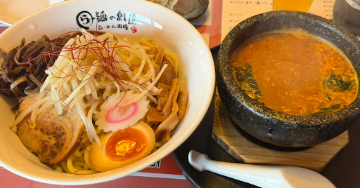麺は、「石焼き辛味噌つけ麺」をいただきました。 当方、辛いのは好きなのですが、他の方より辛いのは苦手なので、お店の方にアドバイスいただきました。 魔王系の初級的なものと迷ったので話を聞くと、魔王系はイージーなものでも痺れはあると。 それで、石焼きの辛味噌をいただきましたが、結構これでも辛さのパンチはありました。 腹八分目なんて言葉がありますが、個人的に辛さ弱いけど食べたい人にとっては辛さ八分目でよかったです。