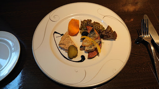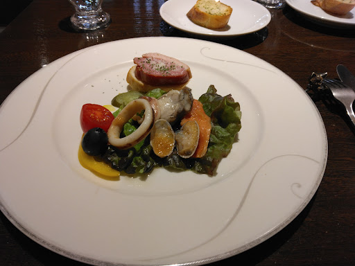 Read more料理がとても美味しかった。 自分はランチセットメニューを注文、コースのメインで、柔らかな牛肉とハンバーグが絶品でしたよ。 前菜?は、海鮮サラダのような料理。 名前忘れた…笑 また、カップにパンが乗せてあり、パンを崩すとカップ中のキノコ類スープと混ぜて食べるスタイルで、これもウマイ。 バケットもお替わり出来たり…。 デザートも良かった~。 なんだかんだ、満腹ににりました。