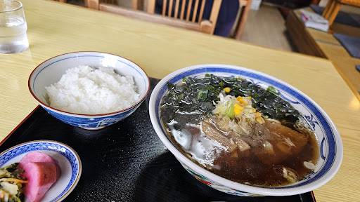 Read more何時もの道の駅あつみに寄る予定でしたが休館日でした😂😂😂 トラックなので近くに駐車場が無いと行けない🙈🙈🙈 Googleマップで探したら200m位のとこに駐車場が有った👍️ 初めて寄ってみました😃✌️ 今日はワカメラーメンとライスにしました👍️ 昔ながらの王道醤油ラーメンにワカメとコーンとチャーシューとメンマとネギというオーソドックスなラーメンですが...