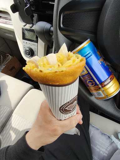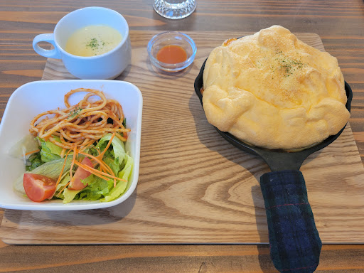 Read more移動販売してたクレープ屋さんが出した店舗で、イートイン可能です。 クレープは甘い具材のが390円くらい、おかず系の具材のが450円くらいです。皮はどちらも共通で使うためか、おかず系を頼んでも少し甘め。 トッピングが(スティックパイとかカスタードクリームとか)色々あって、自分オリジナルも楽しめそうです。 パンケーキは、ズッシリ系ではなく、いわゆるスフレみたいな軽い口当たりです。種類はそんなにたくさん無いですが、とっても美味しいです。 水やお手ふきはセルフです。でも、ピッチャーの水がただの水ではなく「レモン水」だったので、オシャレだな~と感心しました。 それから、注文方法が特殊です。各テーブルに注文票が置いてあるので、自分で記入して、レジに持っていきます。そこで料金を前払いしたら、注文完了です。 オムライスとかドリアとかミートソースとかは、スープとサラダとミニデザート付で900円弱!ここでランチしていっても全然OKだと思います。 駐車場は少し離れた所にあ...