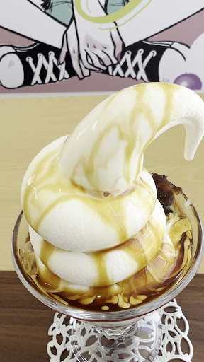 ソフトクリームなパフェはAll650円 黒蜜を注文、抹茶も美味しそうでした。 カキ氷は700円〜1,000円です。