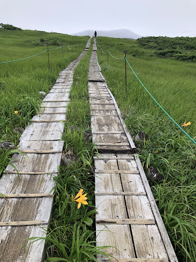 This is the trailhead foe Mt. Gassan. The parking area might be crowded. There are busses. Be more careful coming here. The road is very challenging. This area has bathrooms, restaurant, vending machines etc. The trail stars just behind the restaurant. Follow the path. Have some coins if you are gonna use...