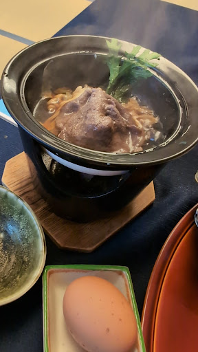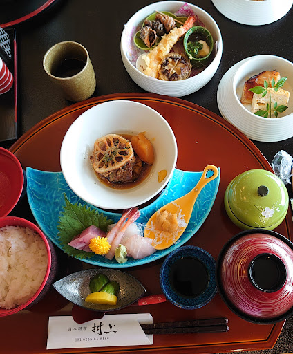 とにかく沢山の種類の料理や食材達が 店主の腕や、綺麗でお洒落な器達への盛付に より、値段に見合わない豪華な膳に見えます。 村上膳3000円を注文すれば、お刺身、天ぷら 煮魚、固形燃料付きのすき焼き、茶碗蒸し、 小鉢いくつかと香の物と味噌汁、この日は たまたまか、きのこの炊き込みご飯が 嬉しくありました。