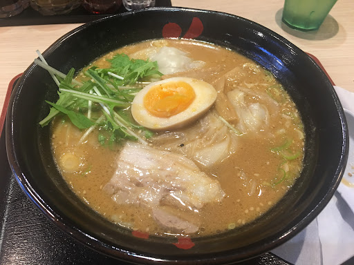 Located In front of akagawa. Spacious dining area, including counter tables and Family table seating with outdoor view. Ramen broth is light and tasty with wonton options. Shrimp and meat...