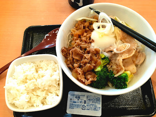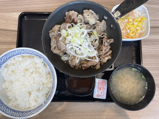 リフォーム後は、フードコートみたいなシステムになりました。 ①まず、入り口すぐのカウンターで注文してから好きな席につきます。 ②手渡されたアラームが鳴ったら、提供窓口に行って料理のお盆を受けとります。お冷や(または温かい緑茶)とカトラリーは、必要なだけ自分で持っていきます。お手拭きはありません。 ③(客の回転率が重要そうな牛丼屋なのに)ドリンクバーが登場しました!コーヒーもおかわり自由です!ドリンクバーコーナーには、手指除菌用のスプレーがあります。 ④食後は、お膳を下げる棚に持っていきます。