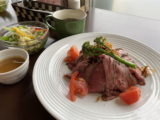 Read more障害者就労継続センター あいさんハウスが営業しているカフェで、カフェの名前は「ベーカリーカフェ燦(さん)」だそうです。美空ひばりの愛燦燦の燦ですね。入り口のところが、ベーカリーとあいさんハウスの木工ハウスで作られた物や傘入れなどの商品を売っているコーナーがあります。カフェは明るく落ち着いた雰囲気で、障害者の皆さんがトレーニングの一環としてウエイターやウエイトレスとして働かれています。日曜日の午後1時頃に訪問したので、店内は混んではいませんでしたが、待ち時間はそれなりにありました。最初にピクルスが運ばれてきて、メインとサラダが来て、しばらくしてスープとパンが運ばれてくるのはご愛敬ということで、スタッフさんの働きを暖かく見守ってあげる姿勢が必要かと思います。「お水お願いしますね。」「この済んだお皿はさげてくださいね。」と声をかけると一生懸命対応してくれます。 メインは6種類の中から選べます。料理によってかなりカロリーに差(約250~530kcal)があるので、自分の好みとお腹の具合で選ぶ必要があります。今回は、チキンのコンフィとすき焼きカツをオーダー。チキンは皮がパリッとしっかり焼かれていて、282828nyaさんの言われるようにナイフを入れると骨から簡単に外れました。すき焼きカツはすき焼きをカツ仕立てにして、ポーチドエッグが乗っているおもしろいメニューでした。こんなカツもありですね。スープはカレーポタージュが大きめのマグカップでいただけました。結構美味しかったです。パンは小ぶりのプレーンなトーストとゴマ入りトースト。お料理のボリュームは十分でした。デザートはオレンジ・リンゴ・ピンクグレープフルーツのゼリーから1種類。飲み物もホットは珈琲、ダージリン、ミルクなどがあり、アイス系も数種類から選べます。ダージリンはティーパックで砂時計と一緒にポットで運ばれてきます。ネコのティーパックの置き皿がかわいいで...
