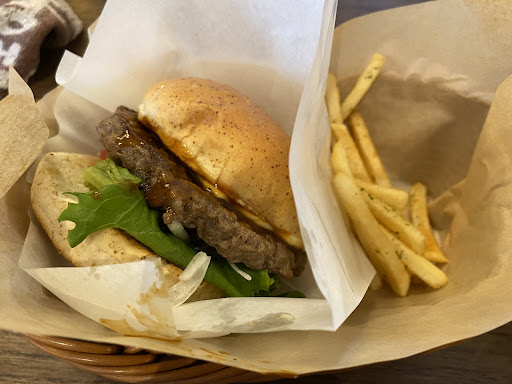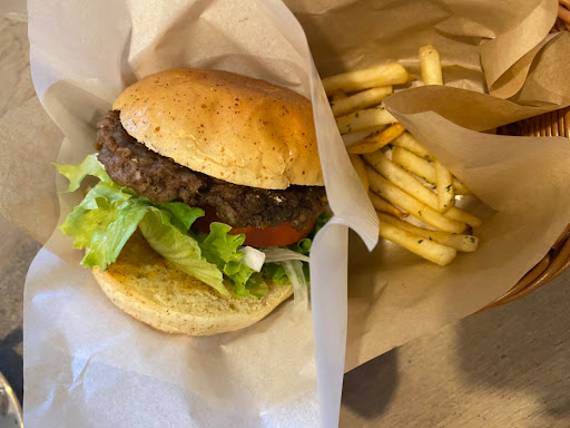 ハンバーガーモーニングはハンバーガーとフライドポテトが付いてきました。全粒粉のバンズに挟まったパテとトマト、オニオンがバランス良くお昼にするには丁度良い食べ応えでした。