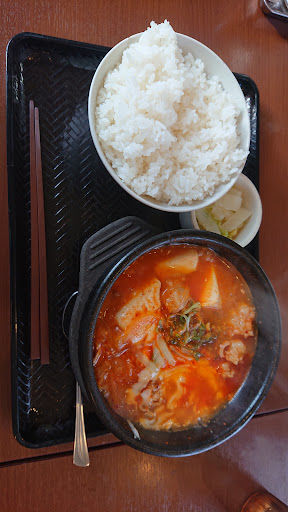 注文を待つことおよそ10分、石焼の器にグツグツと美味しそうな音を立てたスン豆腐がやってきました。とても熱々で体の芯まで温まる、寒い日には持ってこいの一品でした。味付けはそこまで辛くはなく、ご飯との相性も抜群で美味しかったです。値段もトッピングをしなければ定食で頼んでも1000円もいかないので結構コス...